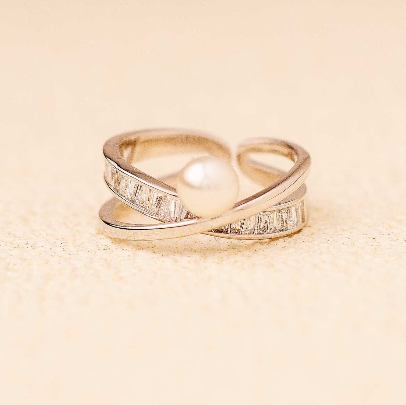 ANILLO LUNA LLENA PLATEADO UNA PERLA