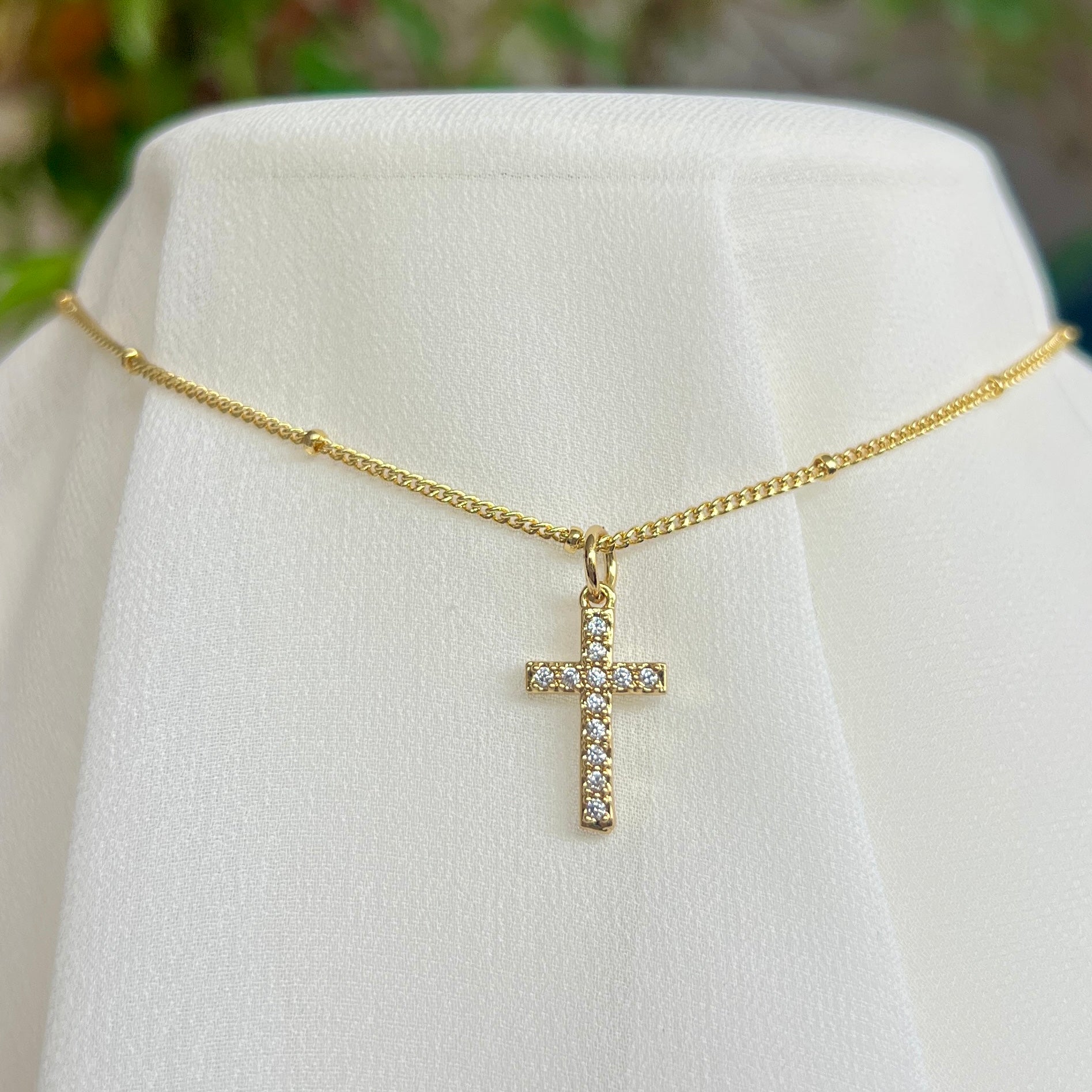 CADENA CRUZ BRILLOS DORADA