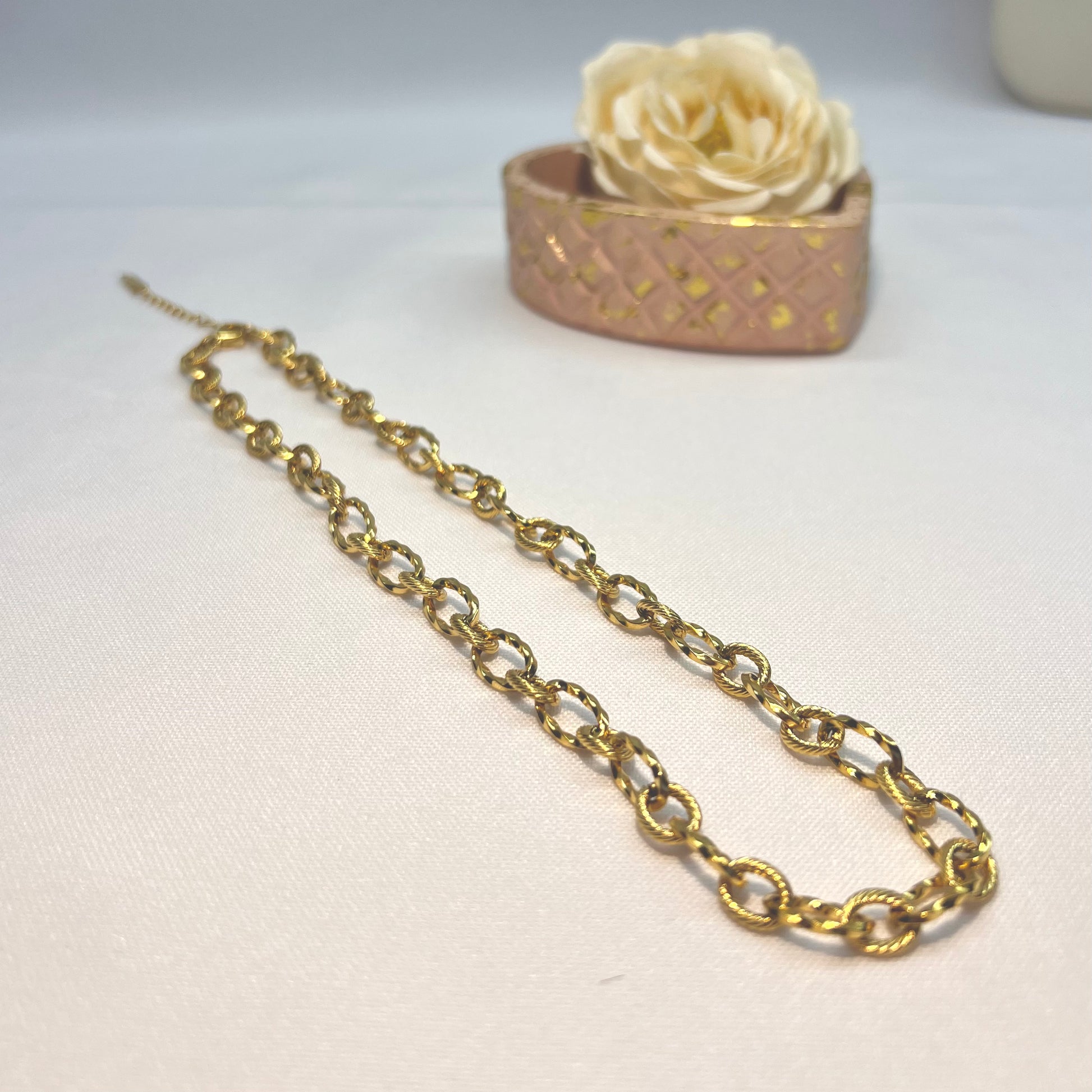 La cadena Entrelazos simboliza la conexión y la unión eterna. Su diseño único combina delicados eslabones entrelazados que representan los lazos significativos de la vida. Perfecta para añadir un toque de sofisticación a cualquier outfit, esta pieza es ideal para mujeres que valoran la elegancia en los detalles.