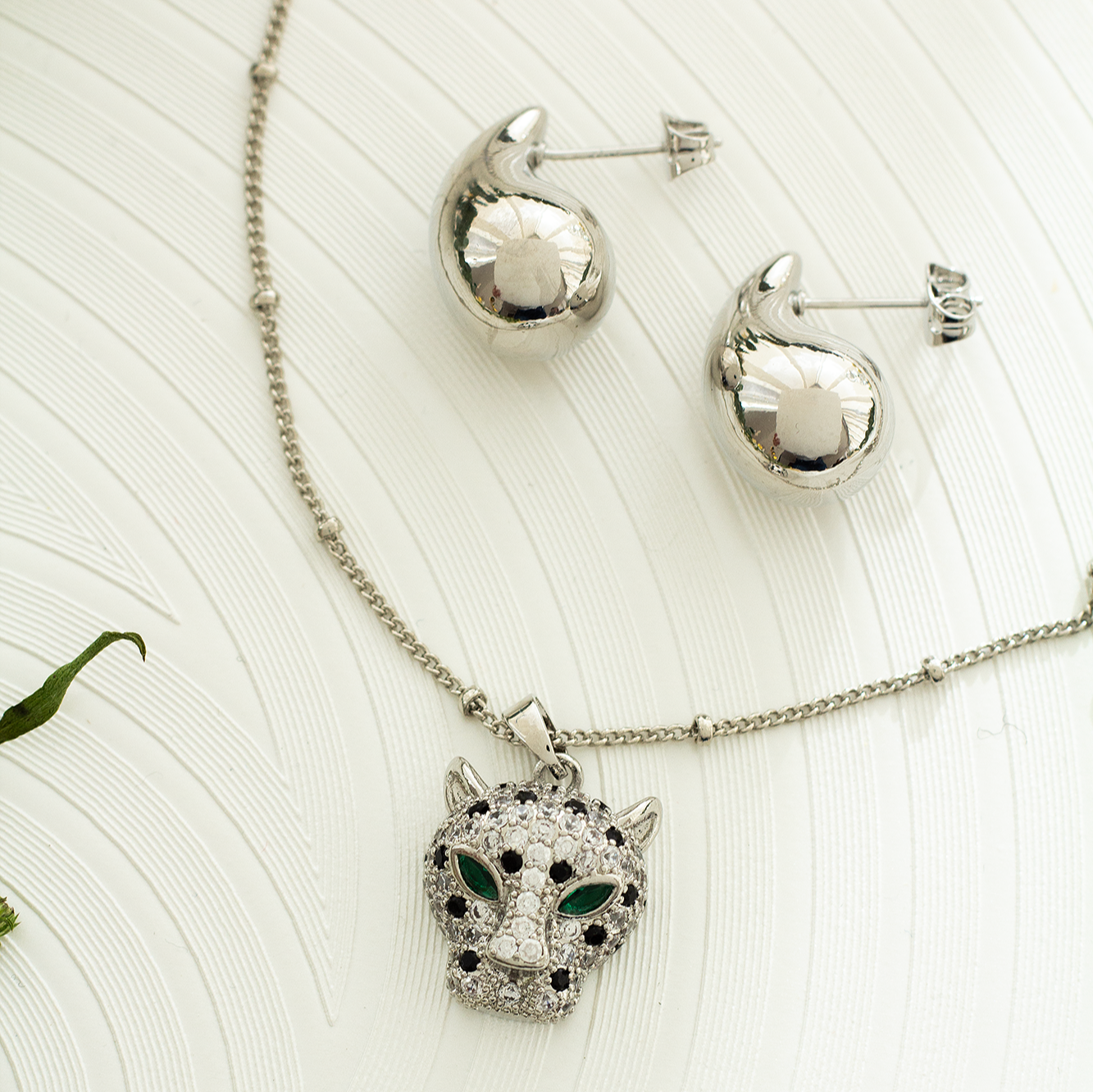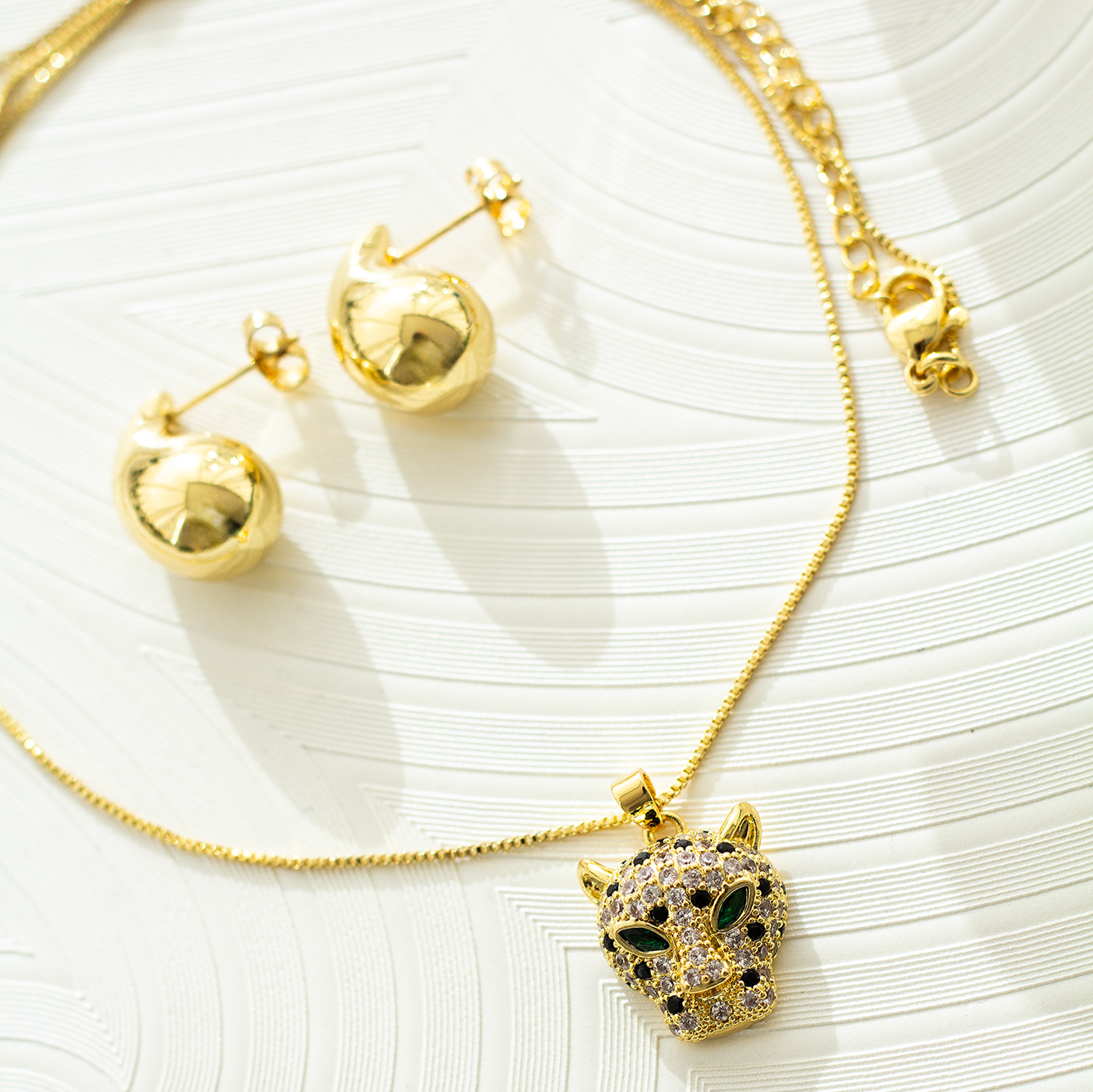 Este collar con un dije de cabeza de felino engastado con circonitas y ojos verdes es un símbolo de fuerza, independencia y belleza salvaje. El felino representa la valentía, la confianza y la conexión con tu instinto femenino. Un recordatorio de que eres una mujer poderosa y capaz de conquistar cualquier desafío.