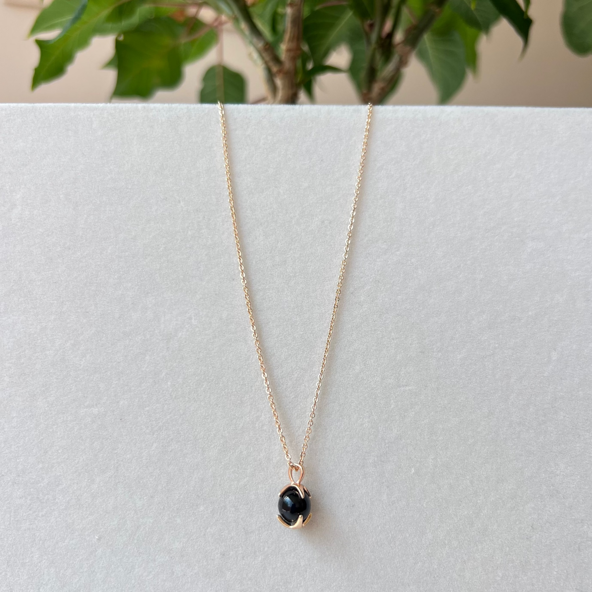 Esta cadena elegante y moderna, complementada con un dije en forma de bola de color negro o blanco que aporta un toque de misterio y sofisticación. El diseño minimalista de la cadena resalta la intensidad del color del dije, creando un contraste atractivo y llamativo.