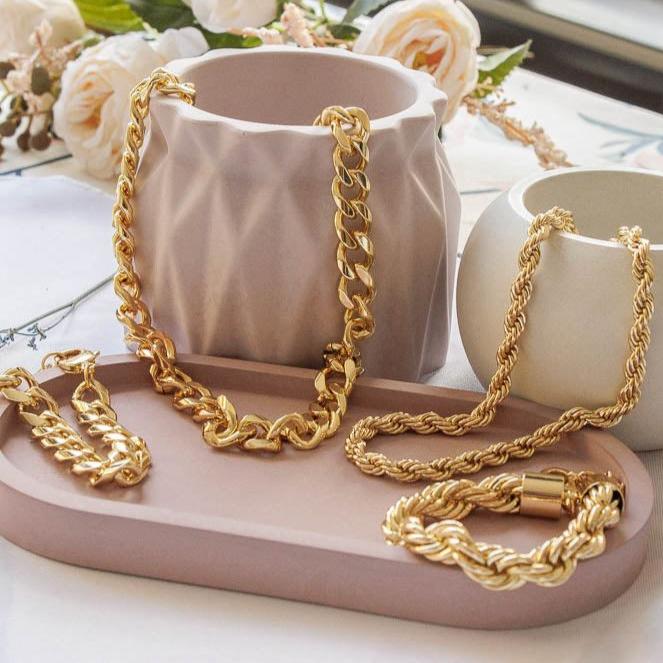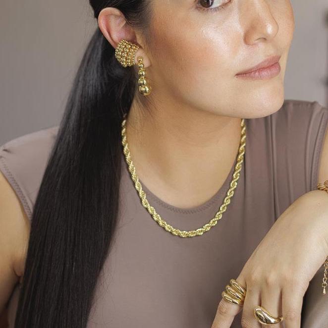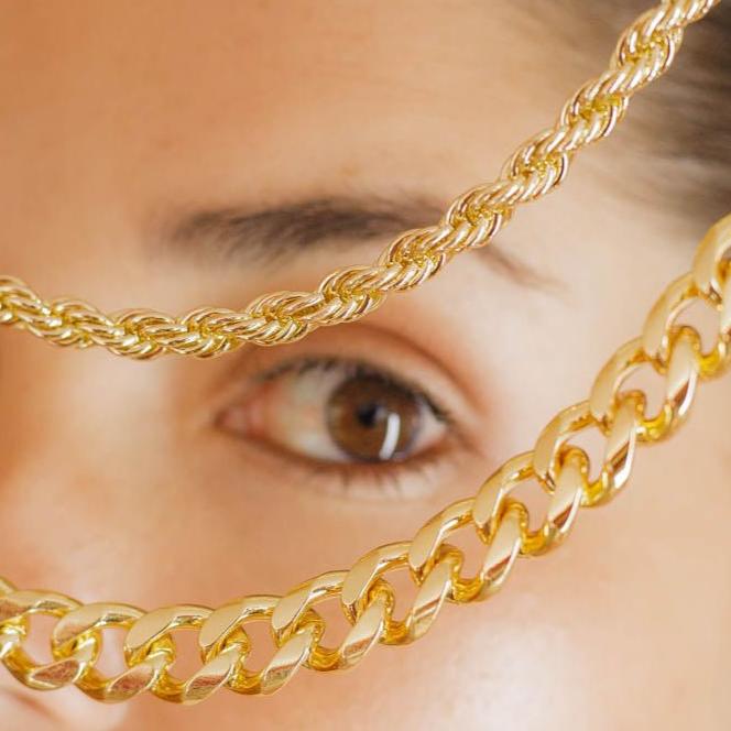 Esta cadena de lazo en rodio dorado evoca la fuerza y la elegancia de una espiral ascendente. Cada vuelta simboliza el crecimiento personal y la evolución constante. Un recordatorio de tu capacidad para superar obstáculos y alcanzar tus metas con gracia y determinación.