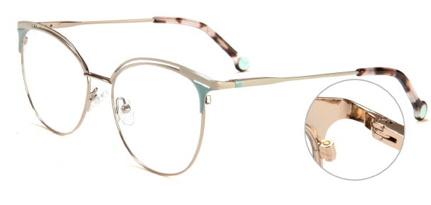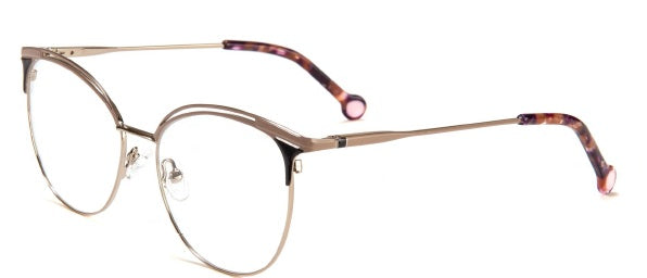 Estas monturas "Ambar" combinan modernidad y elegancia gracias a su estructura metálica ligera con un delicado detalle que resalta el diseño superior. Las varillas con acabado en carey añaden un toque vintage, mientras que la forma redondeada con un sutil estilo cat-eye enmarca el rostro con suavidad y sofisticación.