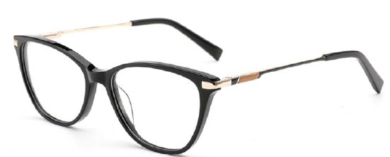 Esta montura "Astoria" con un diseño atemporal combina la calidez del acetato negro con la luminosidad del metal dorado. Las líneas curvas y elegantes del marco realzan cualquier rostro.