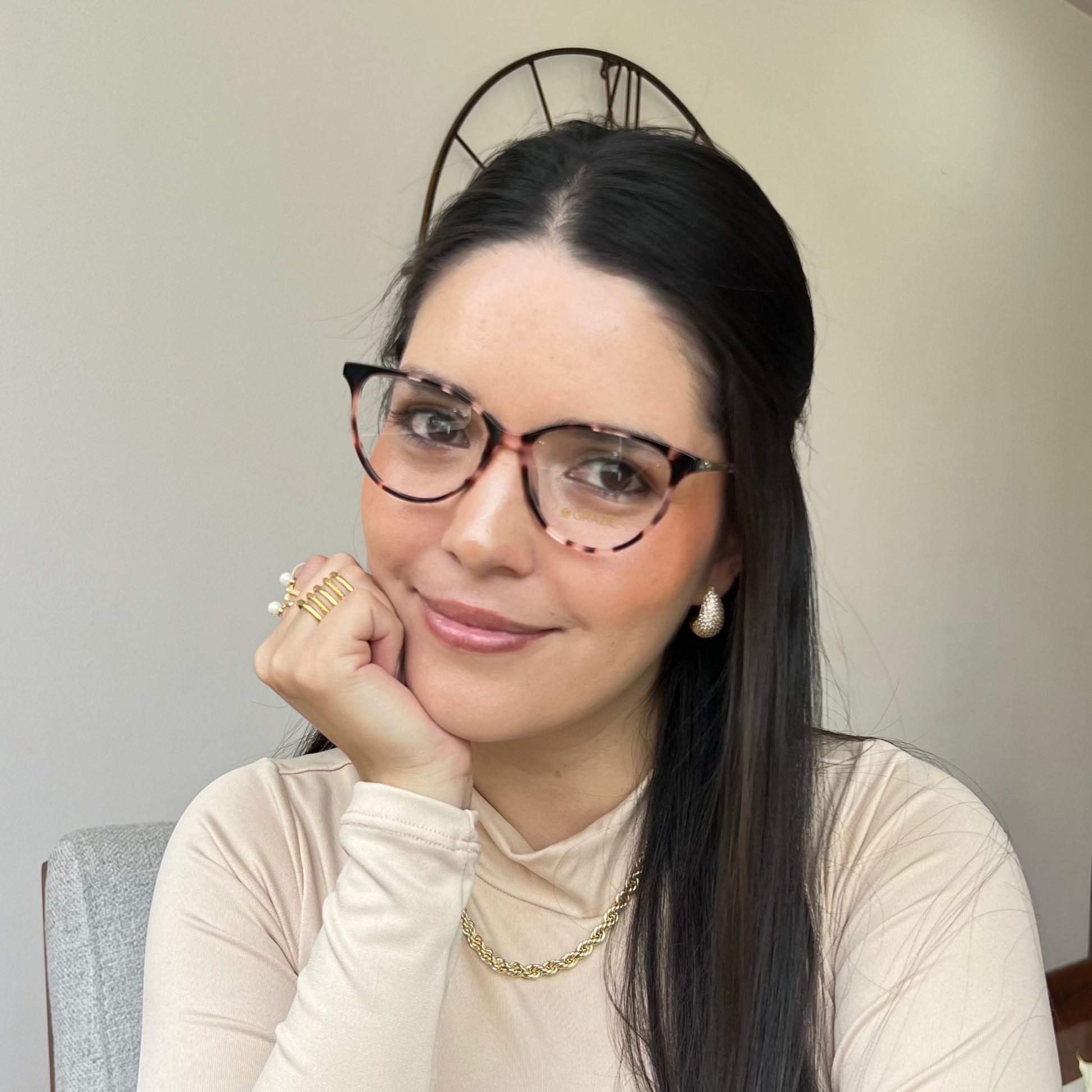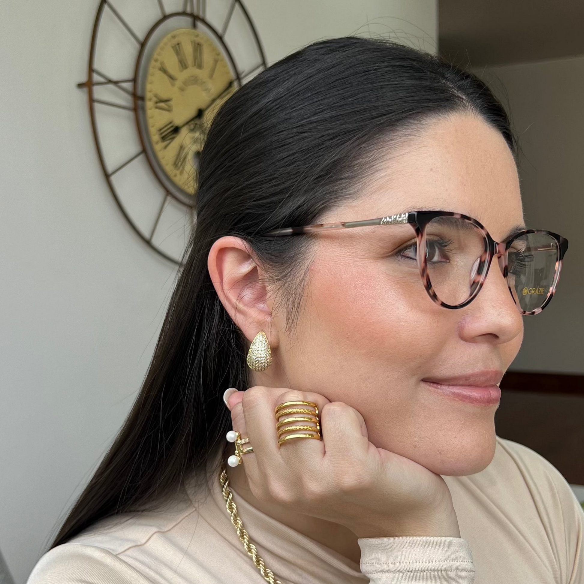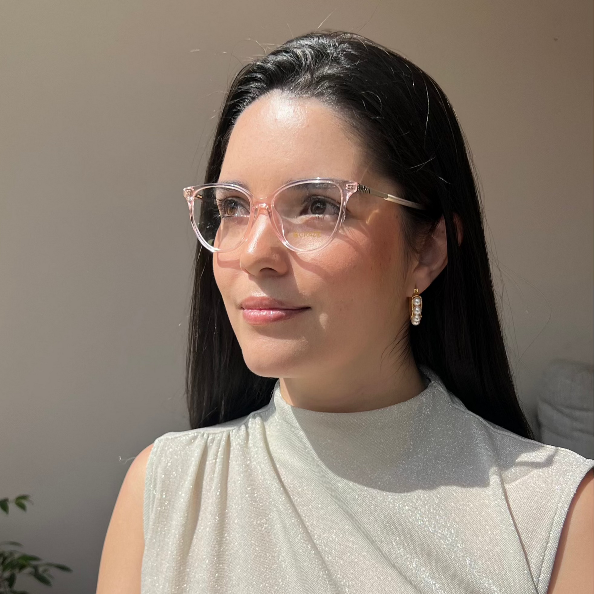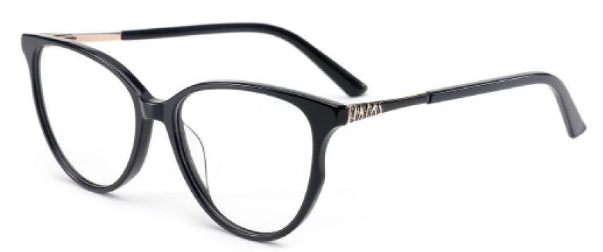 Esta montura "Chroma" destaca por la calidad de sus acabados y la atención al detalle. El acetato brillante se complementa a la perfección con los apliques metálicos dorados, creando un accesorio elegante y duradero