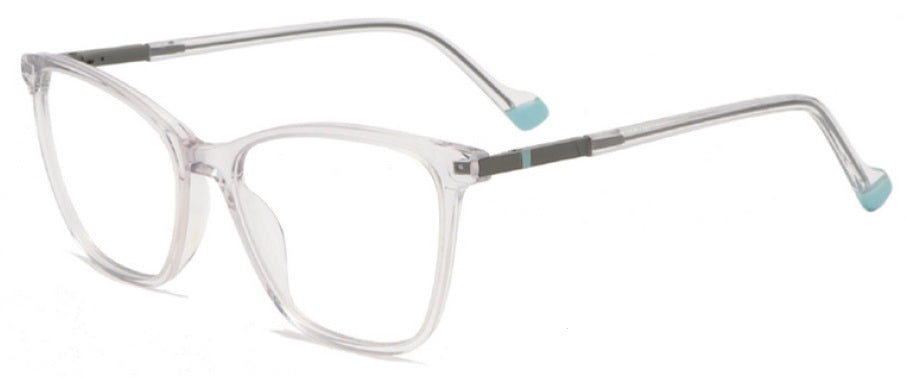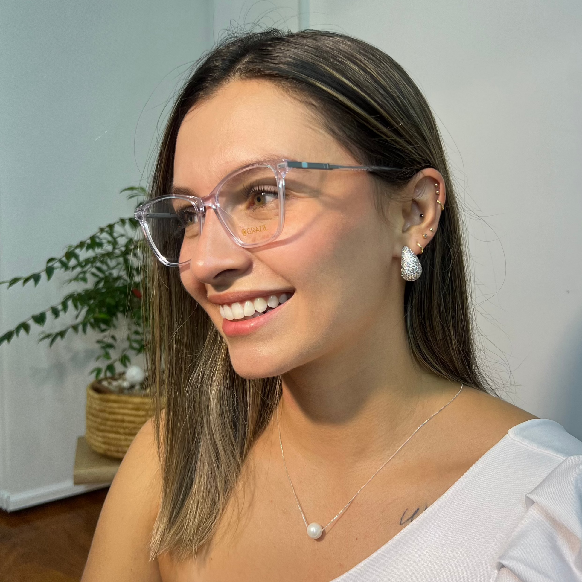 Esta montura "Clear" destaca por su diseño moderno y minimalista, con una forma favorecedora. La transparencia del material le da un aire ligero y actual, mientras que los detalles de color añaden un toque de personalidad sin ser estridentes. Es una montura adecuada para un uso diario y que combina bien con diferentes estilos de vestimenta.