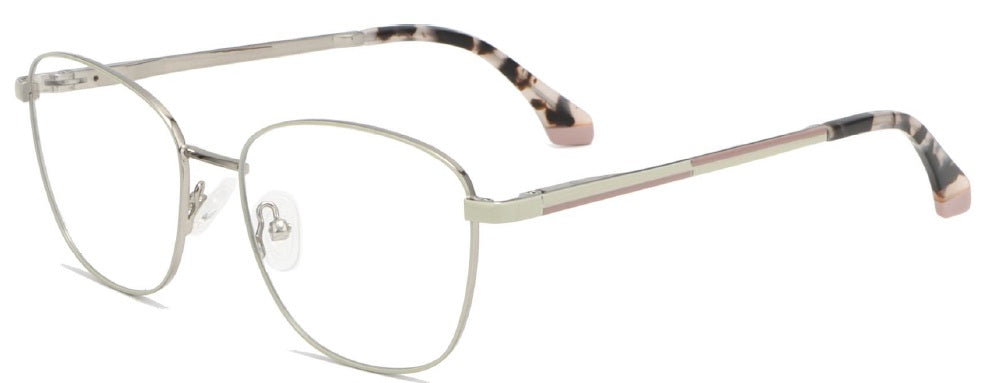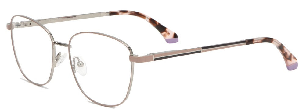 Esta montura "Coral" combina un estilo moderno con un toque retro, presentando una forma redonda u ovalada con un aro completo. El frente es de metal con detalles geométricos. El puente es delgado y cómodo. En resumen, una montura femenina y sofisticada con un aire vintage.