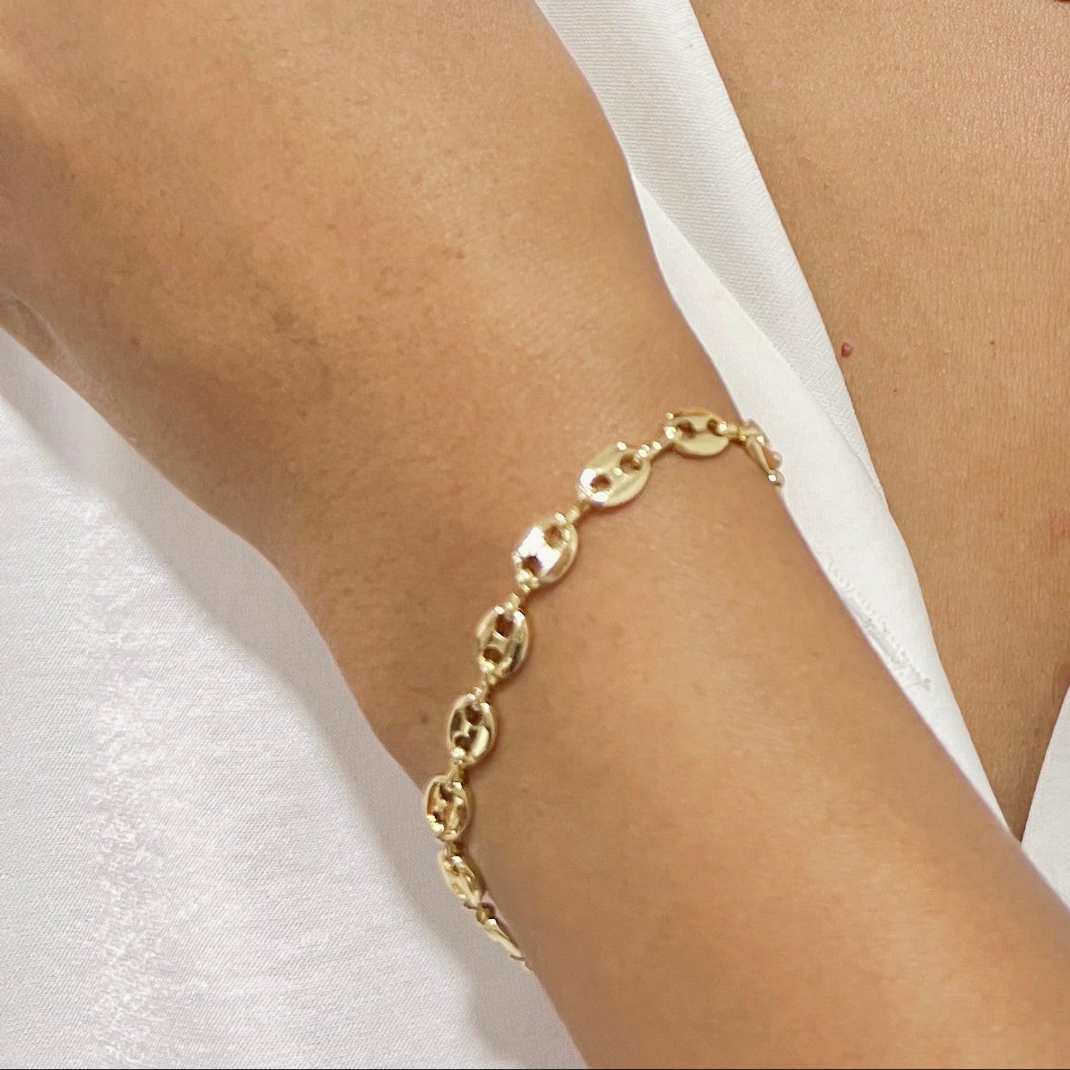 Esta pulsera es un tributo al estilo icónico y a la sofisticación atemporal. Inspirada en el diseño clásico de Gucci, esta pieza presenta eslabones ovalados entrelazados en rodio dorado radiante. Cada eslabón es una declaración de confianza y buen gusto, reflejando tu aprecio por la belleza y la calidad. Esta pulsera es un accesorio versátil que eleva cualquier look, desde lo casual hasta lo elegante.