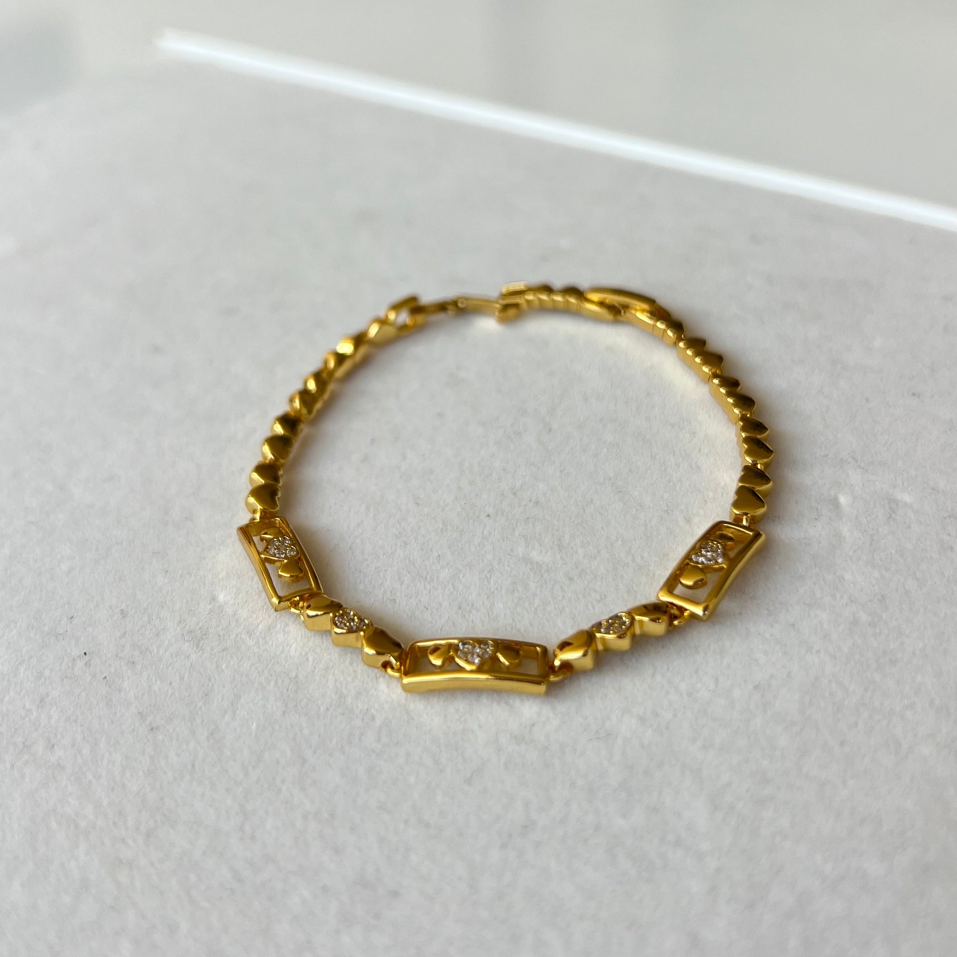 Pulsera de corazones entrelazados que forman un diseño elegante y romántico. Los corazones son de tamaño uniforme y están perfectamente alineados, creando una apariencia suave y fluida.